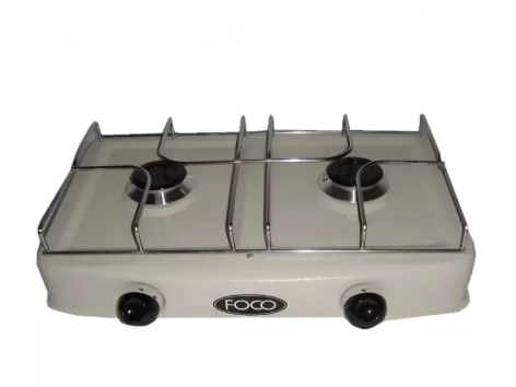 Anafe a gas FOCO doble hornalla aluminio con válvula blanco